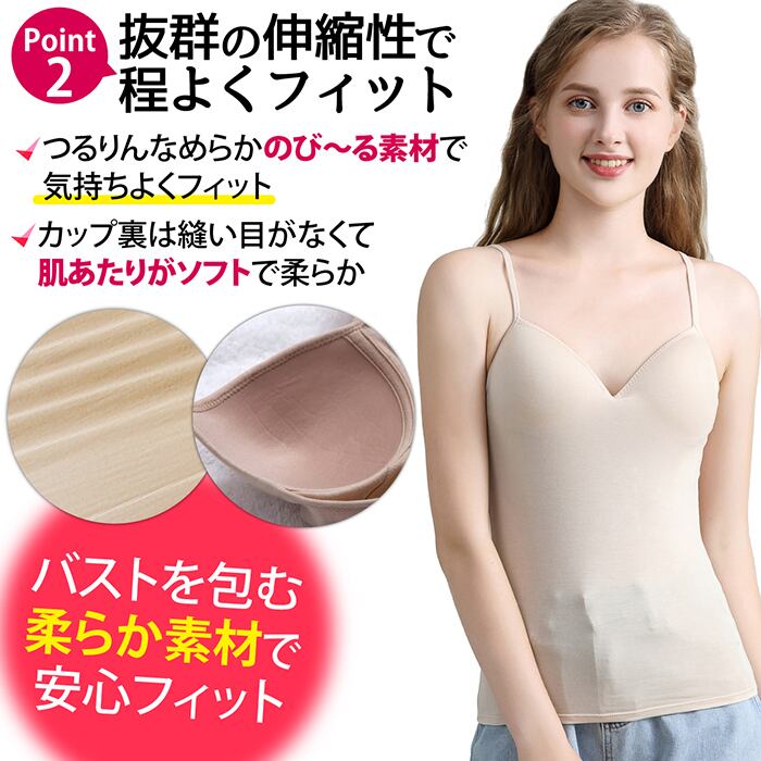 カップ付きのキャミソールで煩わしかったブラジャーから解放!